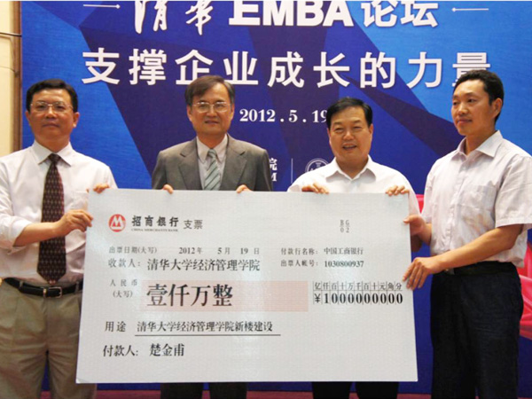 2012年为清华大学捐款1000万元,用于新教学楼的建设及科研经费。