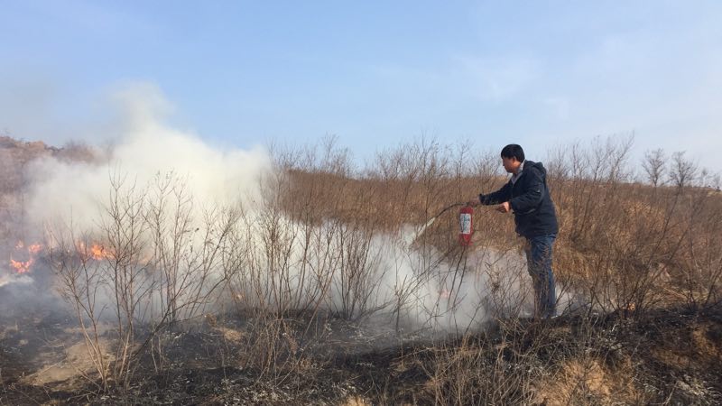 2月4日上午十点,逍遥观光伏电站值班人员刘奎发现7-8光伏区西侧山头着火,最近火情距离光伏区仅有100米,火势随时都可能蔓延过来。刘奎立即通知了在光伏区防火巡查的运维人员。吴少峰、娄福强、杜茹甫、乔柏清等人携带消防器材立马从摘星楼光伏区赶往火情地点。经过我站运维人员和防火人员奋力扑救,十一点半左右,明火全部扑灭。
