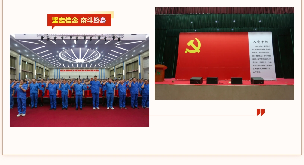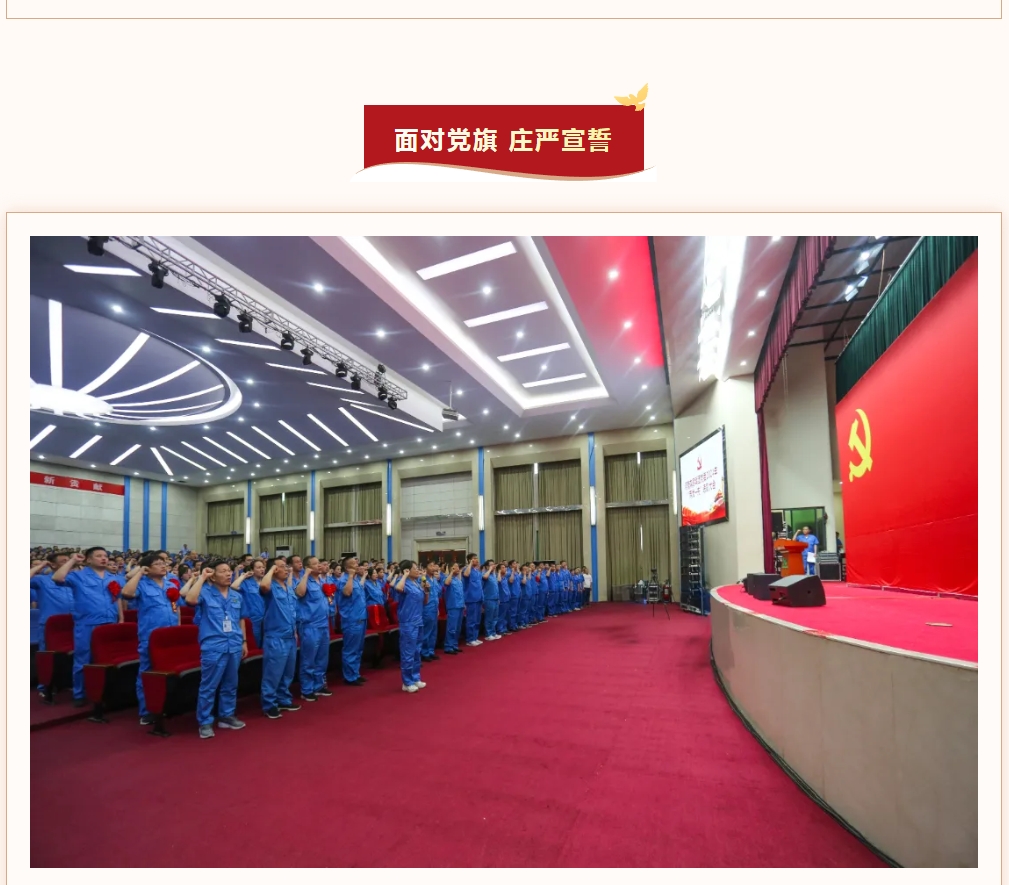 下午17时,嘹亮的国歌在森源大礼堂响起,大会正式拉开帷幕。“我志愿加入中国共产党,拥护党的纲领,遵守党的章程……”,全体党员在河南森源集团党委委员张瑜霞的带领下,面向鲜红的党旗,庄严宣誓。