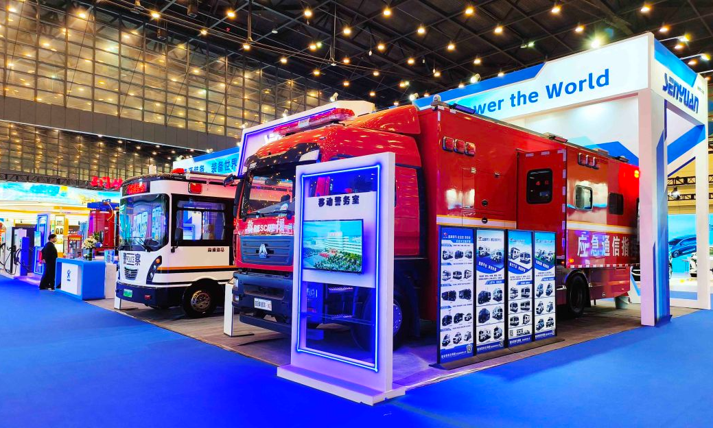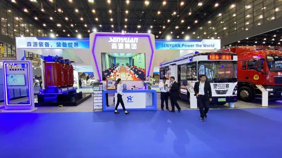 此次展会,森源集团展示产品为“华龙一号”核电1e级开关设备、新能效变压器、新能源充电桩、智慧环卫平台、通信指挥车、移动警务室等。