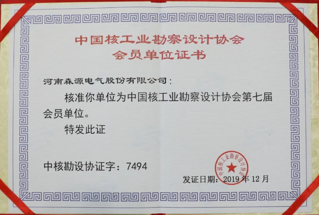近日,森源集团旗下公司森源电气接到中国核工业勘察设计协会颁发的会员单位证书,和该协会下属核工业电气专业委员会颁发的委员证书,副总工程师崔晓科当选核工业电气专业委员会委员。