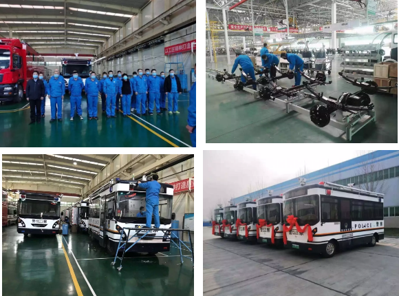 从初二到初五,从初五到初八,效率逐渐提高,产量不断扩大。森源人怀揣大爱,争分夺秒奋战在工作岗位上:为了第一时间将应急防疫车辆发出,森源鸿马和森源汽车的装配、质检人员24小时轮班作业,销售人员实行线上办公,通过防疫管控指挥平台查询布控的强大功能,积极联系各地疾控中心、卫健委、公安、医院等相关部门,使加班赶制的30多台应急管控专用装备通过平台及时发运到驻马店平舆、南阳南召、河北磁县、甘肃武威、青海德令哈、甘肃凉州……