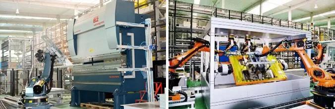 在森源电气,李兵书先后察看了公司通过集成创新打造的钣金柔性智造系统、智能柜体装配生产线、智能机器人折弯工作站、变压器生产基地、机器人应用工程研究中心等的生产及研发情况。