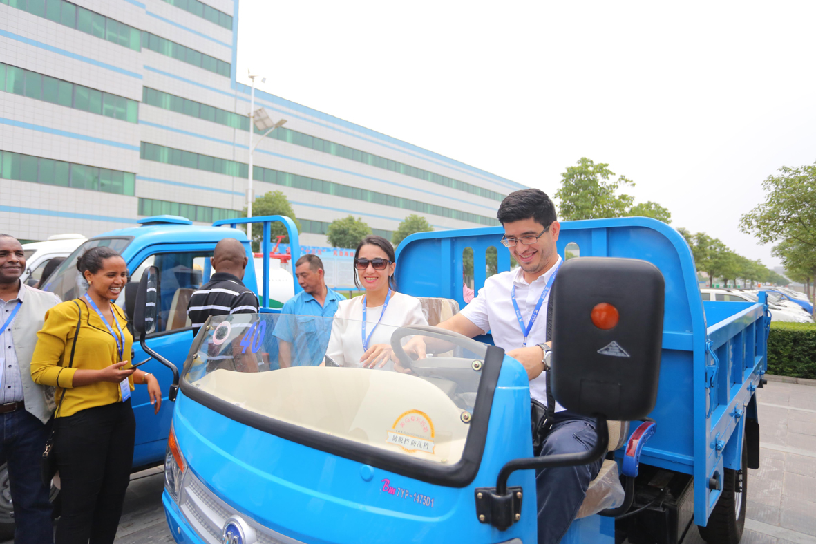 在车辆制造板块,访问团实地观摩了公司电动、环卫、工程三大系列产品的现场路演:技术水平国内领先的纯电动乘用车,市场占有率70%的移动警务室,与欧美国家同步研发的自装卸垃圾车、多功能抑尘车,填补省内空白的50吨汽车起重机,当近百台各种类型的车辆整整齐齐的从访问团面前驶过,现场气氛极为热烈。当路演结束,成员们纷纷涌向各自中意的车型,详细询问其功能参数,希望能够向自己的国家引进。