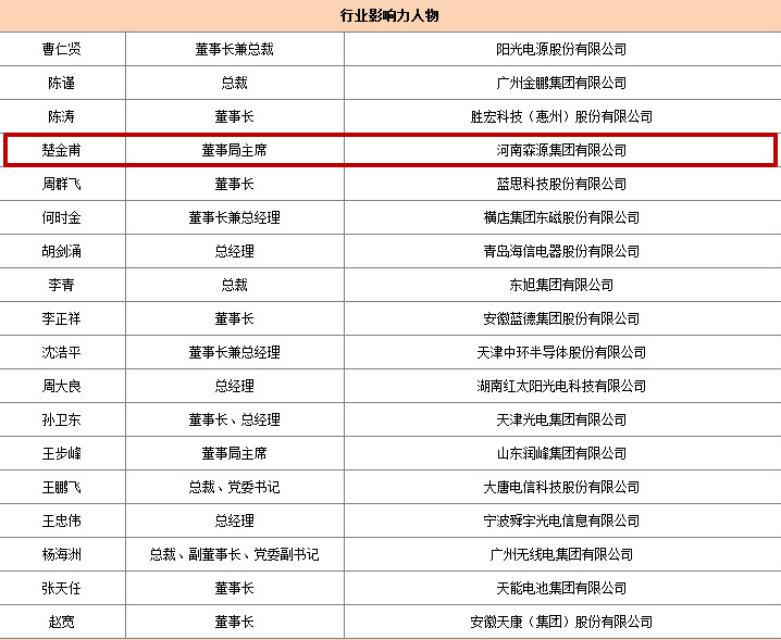 森源集团董事局主席楚金甫入选2016年“全国电子信息行业优秀企业家”之“行业影响力人物”。
