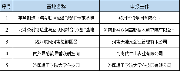 根据专家意见,经研究,拟确定河南森源重工有限公司——电动专用车辆研发创新平台等14个平台为2018年河南省制造业“双创”平台;郑州宇通集团有限公司——宇通制造业与互联网融合“双创”示范基地等5个基地为2018年河南省制造业与互联网融合“双创”基地。公示时间为2018年10月17日至2018年10月23日。
