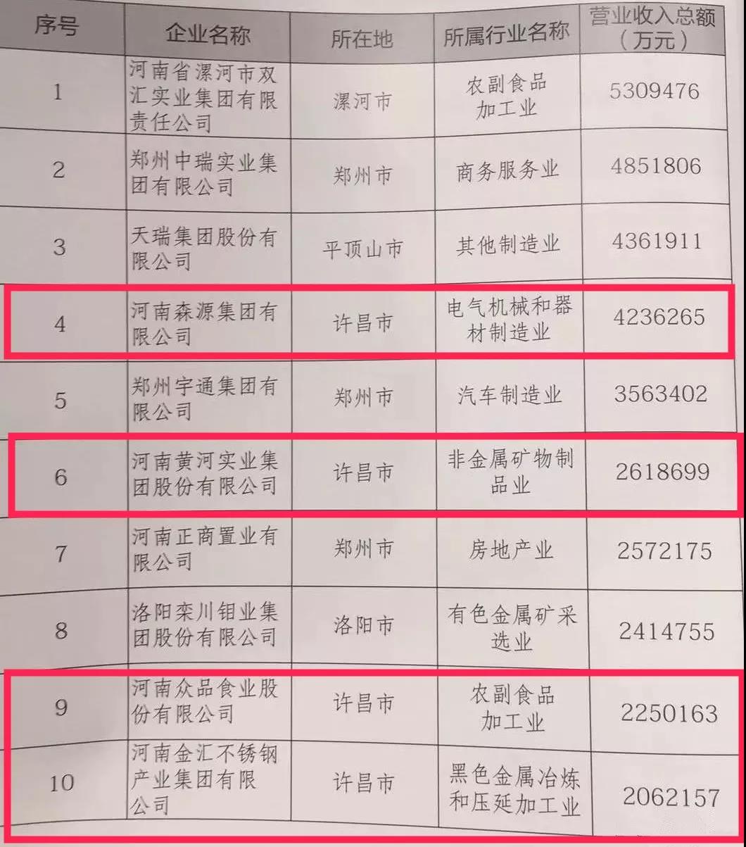2018“河南民营企业100强”名单,前10名就有咱长葛的4家!森源集团、黄河集团、众品食业、金汇集团和金阳铝业分别凭借2017年423.6亿元、261.8亿元、225亿元、206.2亿元和35亿元的营业收入入围该榜单,分列第4位、第6位、第9位、第10位和第59位。