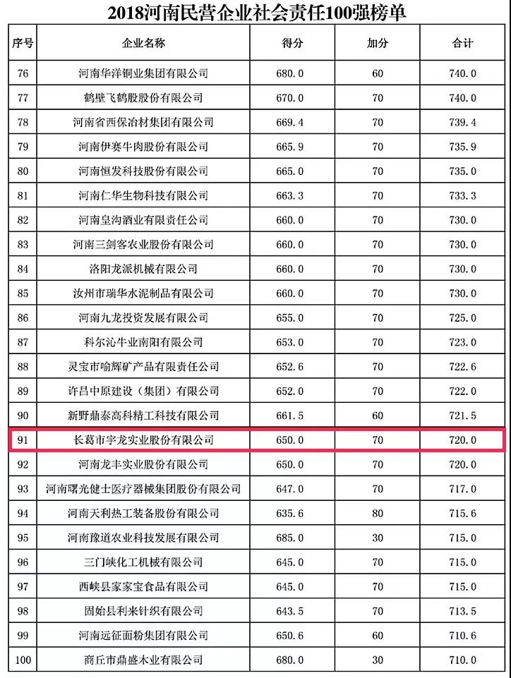 在2018“河南民营企业社会责任100强”榜单中,森源集团、众品食业和宇龙实业分别排在第2名、第4名及第91名;
