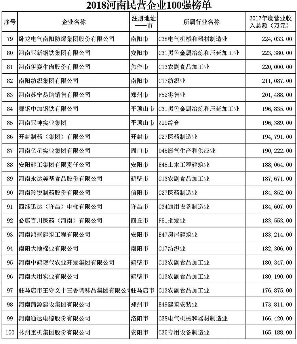 今年是省工商联连续第六年发布“河南民营企业100强”榜单。