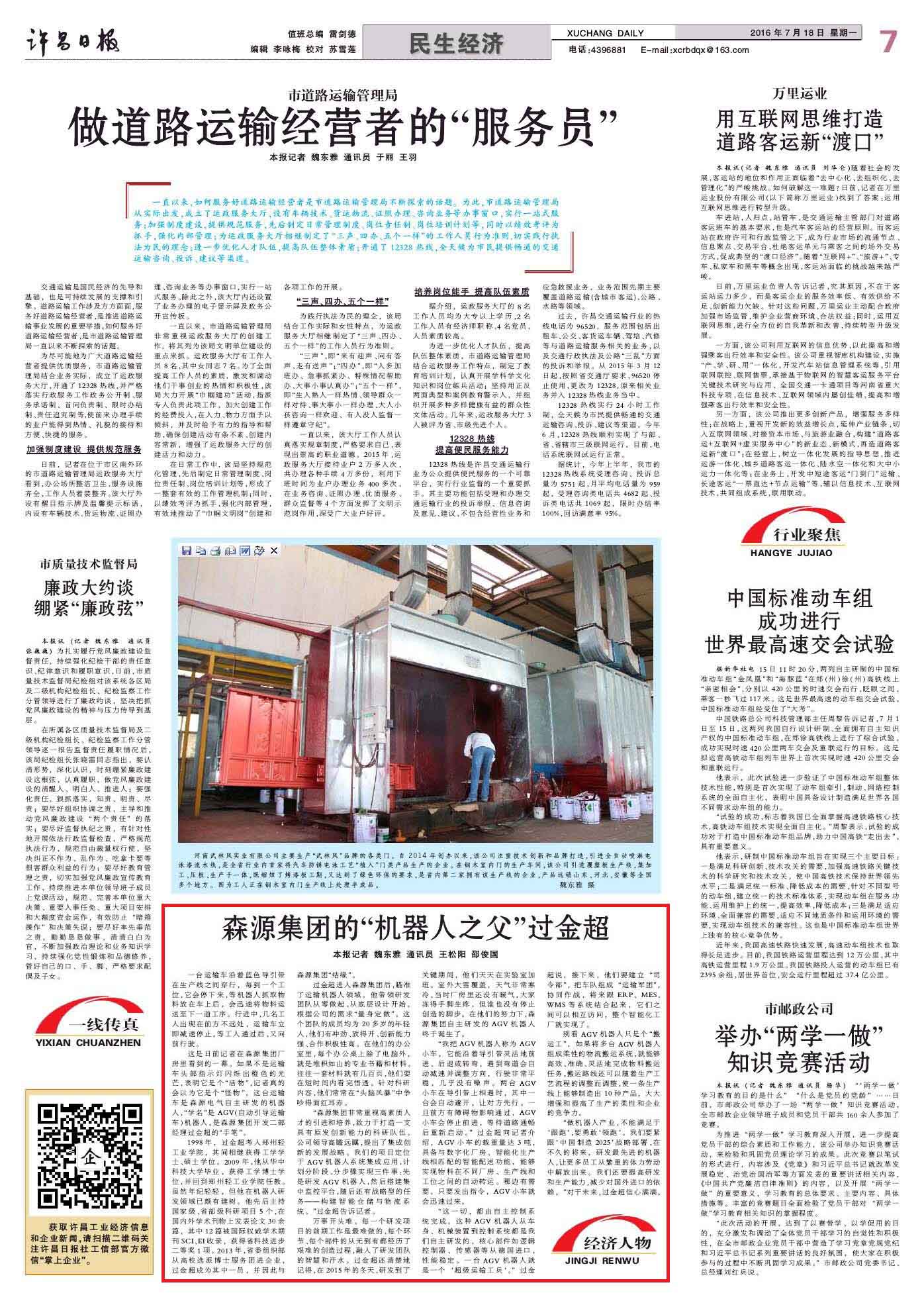这是日前记者在森源集团厂房里看到的一幕。如果不是运输车头部指示灯闪烁出橙色的光芒,表明它是个“活物”,记者真的会以为它是个“怪物”。这台运输车是森源电气自主研发的机器人,“学名”是agv(自动引导运输车)机器人,是森源集团开发二部经理过金超的“手笔”。