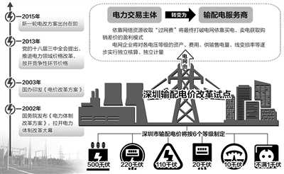 2015年1月1日,深圳市如期启动输配电价改革试点,将现行电网企业依靠购、售电获取差价的盈利模式,改为对电网企业按有效资产实行总收入监管,公布独立的输配电价。